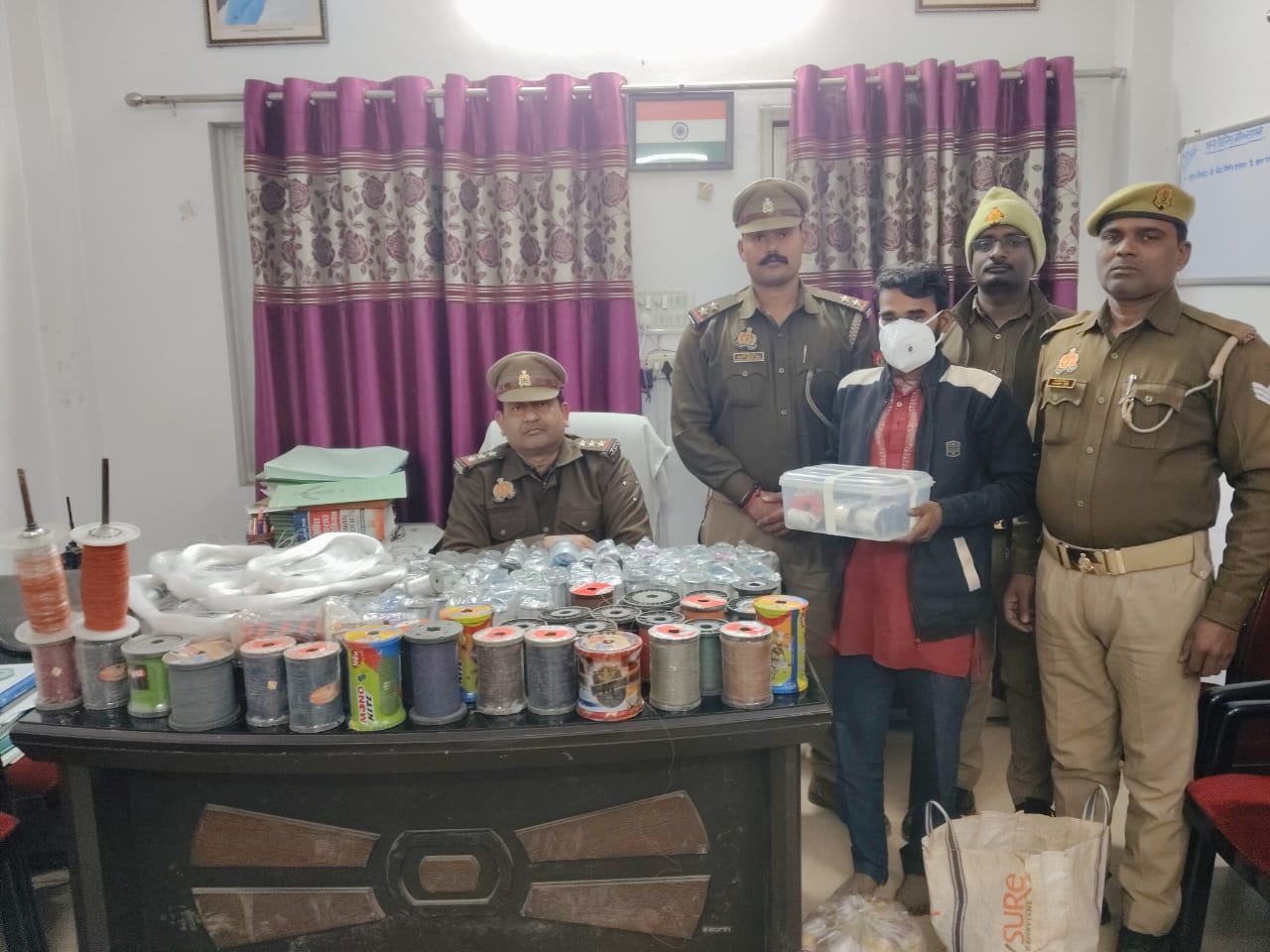 वाराणसी। प्रतिबंधित चाइनीज मांझा की बिक्री और उपयोग पर रोक लगाने के लिए चलाए जा रहे विशेष अभियान के तहत थाना रोहनिया पुलिस को बड़ी सफलता मिली है। पुलिस टीम ने बच्छांव बाजार के पास स्थित एक दुकान से भारी मात्रा में प्रतिबंधित चाइनीज मांझा बरामद करते हुए उसके विक्रेता को गिरफ्तार किया है।