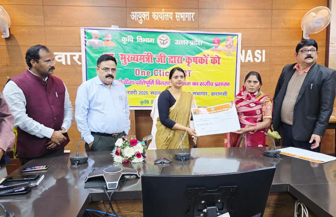 वाराणसी।प्रधानमंत्री फसल बीमा योजना एवं राजस्व तथा आपदा विभाग के माध्यम से संचालित बीमा योजनाओं के लाभार्थी किसानों को ऑन क्लिक डीबीटी के माध्यम से क्षतिपूर्ति प्रदान किया गया। प्रधानमंत्री फसल बीमा योजनान्तर्गत मौसम की प्रतिकूल परिस्थिति होने पर खरीफ 2025 के अन्तर्गत 11584 कृषकों को रू-42626375.00 की क्षतिपूर्ति कृषकों के बैंक खाते में भेजी गयी है तथा मुख्यमंत्री कृषक दुर्घटना कल्याण योजना के अन्तर्गत कुल 40 लाभार्थियों को प्रति लाभार्थी 5 लाख रूपये, कुल 2 करोड़ रूपये की सहायता प्रदान की गयी है। जनपद स्तर के कार्यक्रम का लाईव प्रसारण आयुक्त कार्यालय सभागार में किया गया। जिसमें मुख्य अतिथि के रूप में जिला पंचायत अध्यक्ष पूनम मौर्य द्वारा प्रतिभाग किया गया। इसी के साथ-साथ जनपद के तहसील एवम् विकास खण्ड स्तर पर भी कार्यक्रम का लाईव प्रसारण कराया गया, जिसमें भारी संख्या में लाभार्थी कृषक उपस्थित रहे। जनपद स्तर के कार्यक्रम में लाभार्थी कृषकों सहित परियोजना निदेशक, जिला ग्राम्य विकास अभिकरण/प्रभारी मुख्य विकास अधिकारी संजय कुमार नायक, मुख्य राजस्व अधिकारी अजीत परेश, जिला कृषि अधिकारी संगम सिंह, सांख्यिकीय अधिकारी मुकेश कुमार यादव, अपर सांख्यिकीय अधिकारी गंगेश कुमार सिंह, फसल बीमा कम्पनी के प्रतिनिधि सूर्य प्रकाश यादव उपस्थित रहे। इस अवसर पर जिला कृषि अधिकारी द्वारा अवगत कराया गया कि जिन कृषकों द्वारा रबी 2025 के अन्तर्गत अपनी फसल का बीमा कराया गया है, मौसम की प्रतिकूल परिस्थिति यथा-रोगों, कीटों से क्षति, ओलावृष्टि, जलभराव, बादल फटना, बिजली गिरने से क्षति तथा फसल कटाई के उपरान्त आगामी 14 दिन की अवधि तक खेत में सुखाई हेतु रखी हुई फसल को ओलावृष्टि, चक्रवात, बेमौसम/चक्रवाती वर्षा से नुकसान की स्थिति में कृषक भाई हेल्पलाइन नम्बर-14447 अथवा जिला कृषि अधिकारी/उप कृषि निदेशक कार्यालय में फसल क्षति के 72 घण्टे के अन्दर सूचित करें, जिससे योजनान्तर्गत नियमानुसार कृषक को क्षतिपूर्ति प्रदान कराया जा सके।