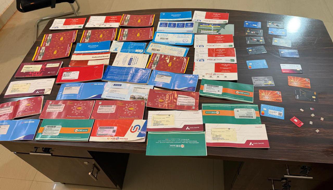 अपराधी गिरफ्तार, उनके कब्जे से काफी मात्रा मे पासबुक, चेकबुक, एटीएम कार्ड व नकदी बरामद-