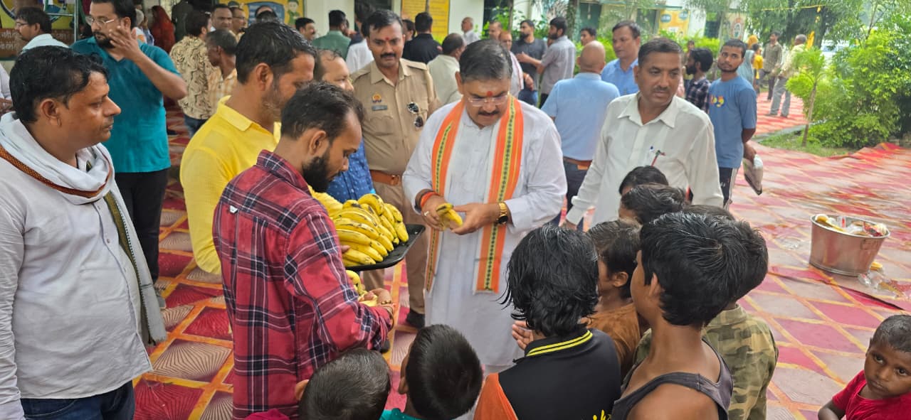 प्राथमिक विद्यालय के बच्चों को फल,बिस्कुट व मिठाई वितरण