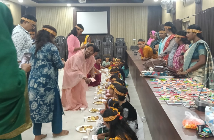 राजातालाब।आराजी लाइन विकासखंड ब्लॉक मुख्यालय पर मंगलवार को खंड विकास अधिकारी सुरेंद्र कुमार सिंह की देखरेख में शरदीय नवरात्र के अष्टमी पर कन्या पूजन समारोह कार्यक्रम का आयोजन किया गया। कन्या पूजन के दौरान आराजी लाइन ब्लॉक प्रमुख नगीना सिंह पटेल ने कन्या पूजन कार्यक्रम का शुभारंभ दीप प्रज्वलित कर किया उसके उपरांत 51 कन्याओं को पांव धोकर तथा उनको तिलक लगाकर कन्या पूजन कर आशीर्वाद लिया सभी कन्याओं को भोजन के रूप में मिष्ठान, पकवान, फलाहार ग्रहण कराया।कन्या पूजन कार्यक्रम के दौरान ब्लॉक प्रमुख प्रतिनिधि महेंद्र सिंह पटेल बीडीओ सुरेंद्र यादव, बाल विकास परियोजना अधिकारी सुजीत कुमार सिंह, मुख्य सेविका, सरला, दीपिका ,बिंदु यादव, माधुरी सरिता, स्नेहा, सीमा, मीना इत्यादि आंगनबाड़ी सहायिका तथा अभिभावक गण उपस्थित रहे।