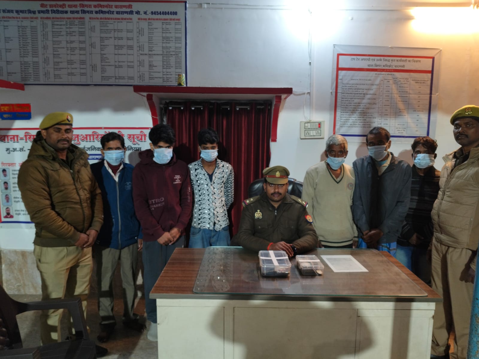 वाराणसी के सिगरा थाना क्षेत्र में पुलिस ने ऑनलाइन जुआ के खिलाफ बड़ी कार्रवाई करते हुए सिगरा पुलिस और एसओजी-02 की संयुक्त टीम ने छह अभियुक्तों को गिरफ्तार किया है। यह कार्रवाई पुलिस आयुक्त के निर्देश पर अपराध नियंत्रण अभियान के तहत की गई। मुखबिर की सूचना पर प्रिया हॉस्पिटल के पास कब्रिस्तान की दीवार के नजदीक छापेमारी कर आरोपियों को पकड़ा गया, जो “भाग्य लक्ष्मी” एप के माध्यम से जुआ खेलते और खिलाते पाए गए।