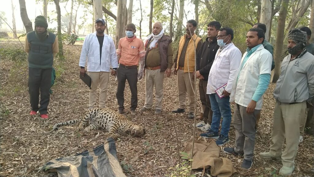 मिर्जापुरः ड्रमंडगंज वन क्षेत्र के बंजारी कला के मड़वा जंगल में एक तेंदुआ मृत अवस्था में मिला है, जिसका पोस्टमार्टम कराया जा रहा है।