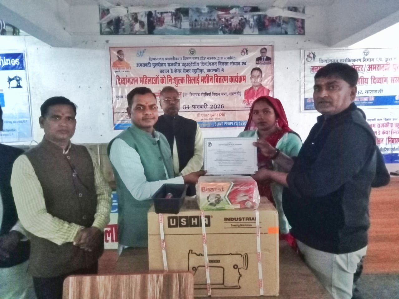 रोहनिया।दिव्यांगजन सशक्तिकरण विभाग उत्तर प्रदेश द्वारा संचालित अमरावती पुरुषोत्तम राजकीय बहुउद्देशी दिव्यांगजन विकास संस्थान एवं बचपन डे केयर सेंटर खुशीपुर में जिला दिव्यांगजन सशक्तिकरण अधिकारी राम प्रकाश सिंह की अध्यक्षता तथा प्रभारी एवं समन्यवक रमेश सिंह की देखरेख में आयोजित नि:शुल्क सिलाई मशीन एवं ट्राई साइकिल, सहायक उपकरण वितरण कार्यक्रम का आयोजन किया गया।जिसमें मुख्य अतिथि रोहनिया विधायक डॉक्टर सुनील पटेल ने संस्थान में प्रशिक्षण प्राप्त करने वाली दिव्यांग महिलाओं को सिलाई मशीन तथा दिव्यांगजनों को मोटराइज्ड ट्राई साइकिल, रेलवे पास, कान की मशीन, व्हीलचेयर सहित अन्य सहायक उपकरण वितरण किया। सिलाई मशीन व सहायक उपकरण पाकर दिव्यांग लाभार्थियों का चेहरा खिल उठा। विधायक डॉक्टर सुनील पटेल ने केंद्र तथा राज्य सरकार द्वारा दिव्यांगजनों हेतु दिए जा रहे सुविधाओं तथा जन कल्याणकारी योजनाओं के बारे में विस्तार पूर्वक वर्णन करते हुए कहा कि सिलाई मशीन एवं सहायक उपकरण मिलने से दिव्यांगजन समाज के मुख्य धारा से जुड़कर आत्मनिर्भर होंगे और अपने परिवार का भरण पोषण करने में सहायक होगे। कार्यक्रम में आए हुए सभी अतिथियों का स्वागत प्रभारी समन्वक रमेश सिंह ने पुष्प गुच्छ व अंग वस्त्र के साथ स्मृति चिन्ह देकर किया।अंत में अध्यापकों के साथ विधायक ने क्लास विजिट भी किया।कार्यक्रम का संचालन डॉक्टर सौरभ सिंह की।कार्यक्रम में प्रमुख रूप से क्षेत्रीय अध्यक्ष डॉ नरेंद्र पटेल, श्यामबली पटेल, माधुरी सिंह ,विनोद मौर्य, आलोक त्रिपाठी, रंजना सिंह ,सोनी झा, बिंदु यादव, प्रदीप यादव इत्यादि लोग शामिल रहे।