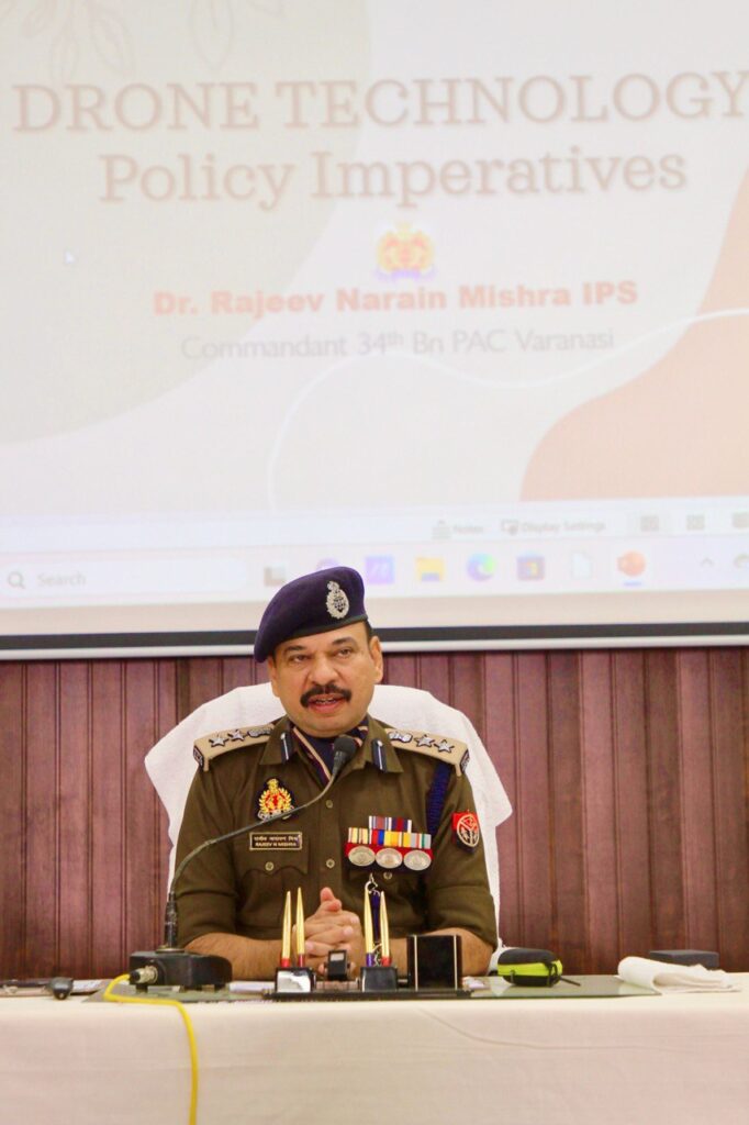 34वीं वाहिनी पीएसी वाराणसी के बहुउद्देशीय हाल पिनाक मंडपम में वहिनीं के जवानों को सेनानायक डॉ0 राजीव नारायण मिश्र, आईपीएस द्वारा वर्तमान में सुरक्षा के प्रत्येक आयामों की सुदृढ़ता को बनाये रखने के साथ-साथ सुरक्षा की महत्ता एवं संवेदनशीलता के दृष्टिगत वर्तमान में ड्रोन के प्रयोग, ड्रोन टेक्नोलॉजी, एटीं-ड्रोन टेक्नोलॉजी, ड्रोन फॉरेंसिक तथा ड्रोन के ...