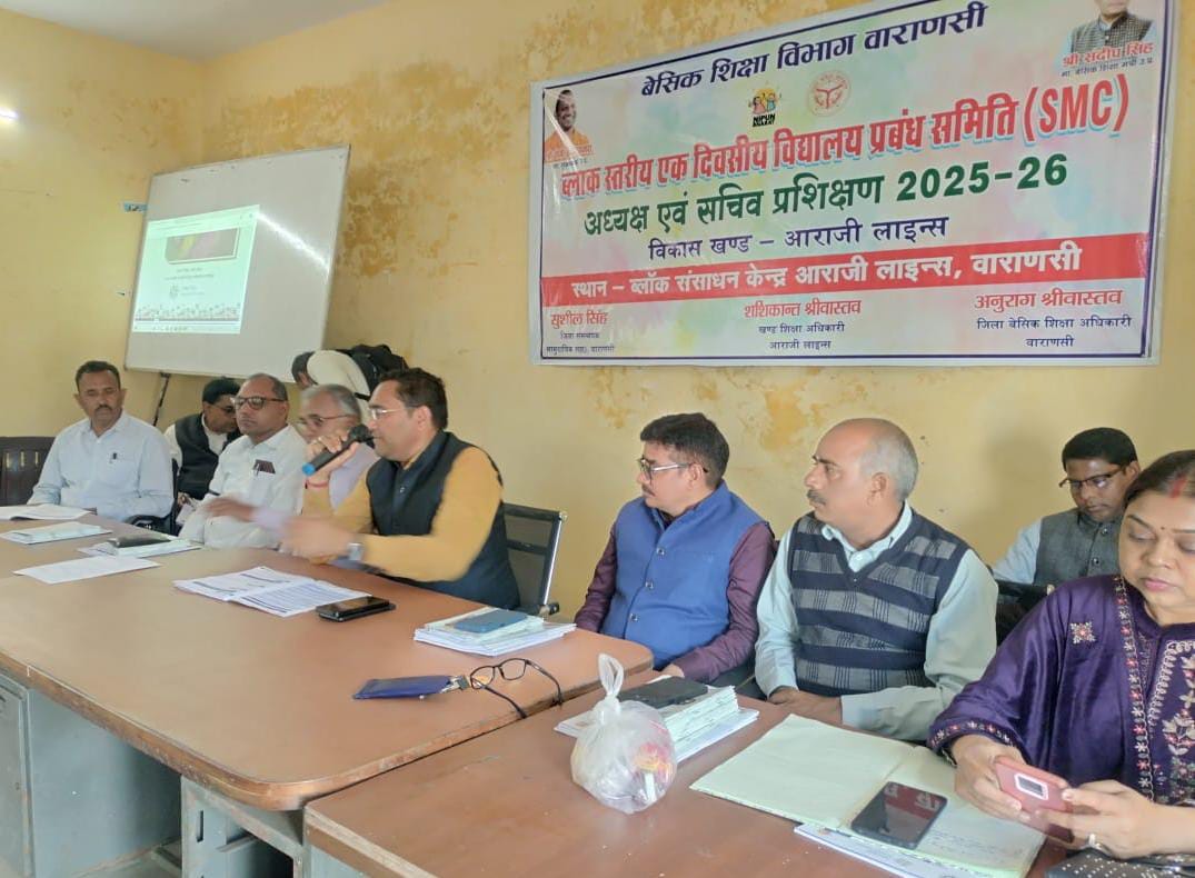 राजातालाब।आराजी लाइन ब्लॉक संसाधन केंद्र पर बुधवार को विद्यालय प्रबंध समिति (एसएमसी) के सचिव एवं अध्यक्षों का प्रशिक्षण कार्यक्रम आयोजित किया गया। कार्यक्रम का शुभारंभ खंड शिक्षा अधिकारी आराजीलाइन शशिकांत श्रीवास्तव द्वारा मां सरस्वती की प्रतिमा पर माल्यार्पण एवं दीप प्रज्वलन कर किया गया।खंड शिक्षा अधिकारी ने एसएमसी के कार्यों एवं दायित्वों से प्रतिभागियों को अवगत कराते हुए विद्यालय के सुचारु संचालन हेतु उनकी सक्रिय भागीदारी पर बल दिया। उन्होंने कहा कि विद्यालय संचालन में सामाजिक सहभागिता बढ़ने से शिक्षा की गुणवत्ता एवं व्यवस्थाओं में सकारात्मक सुधार संभव है। प्रशिक्षण में विकासखंड के 157 विद्यालयों के विद्यालय प्रबंध समिति के सचिव एवं अध्यक्ष/ उपाध्यक्ष ने प्रतिभाग किया।प्रशिक्षण कार्यक्रम में मुख्य रूप से सुरेश सिंह, रामदुलार, संतोष कुमार, विवेक यादव एवं राम मूरत विश्वकर्मा, एआरपी रितेश कुमार,शिवबाला, श्वेता सिंह, सुनीता सिंह,नेहा द्विवेदी सहित ब्लॉक के समस्त नोडल शिक्षक संकुल भी उपस्थित रहे।
